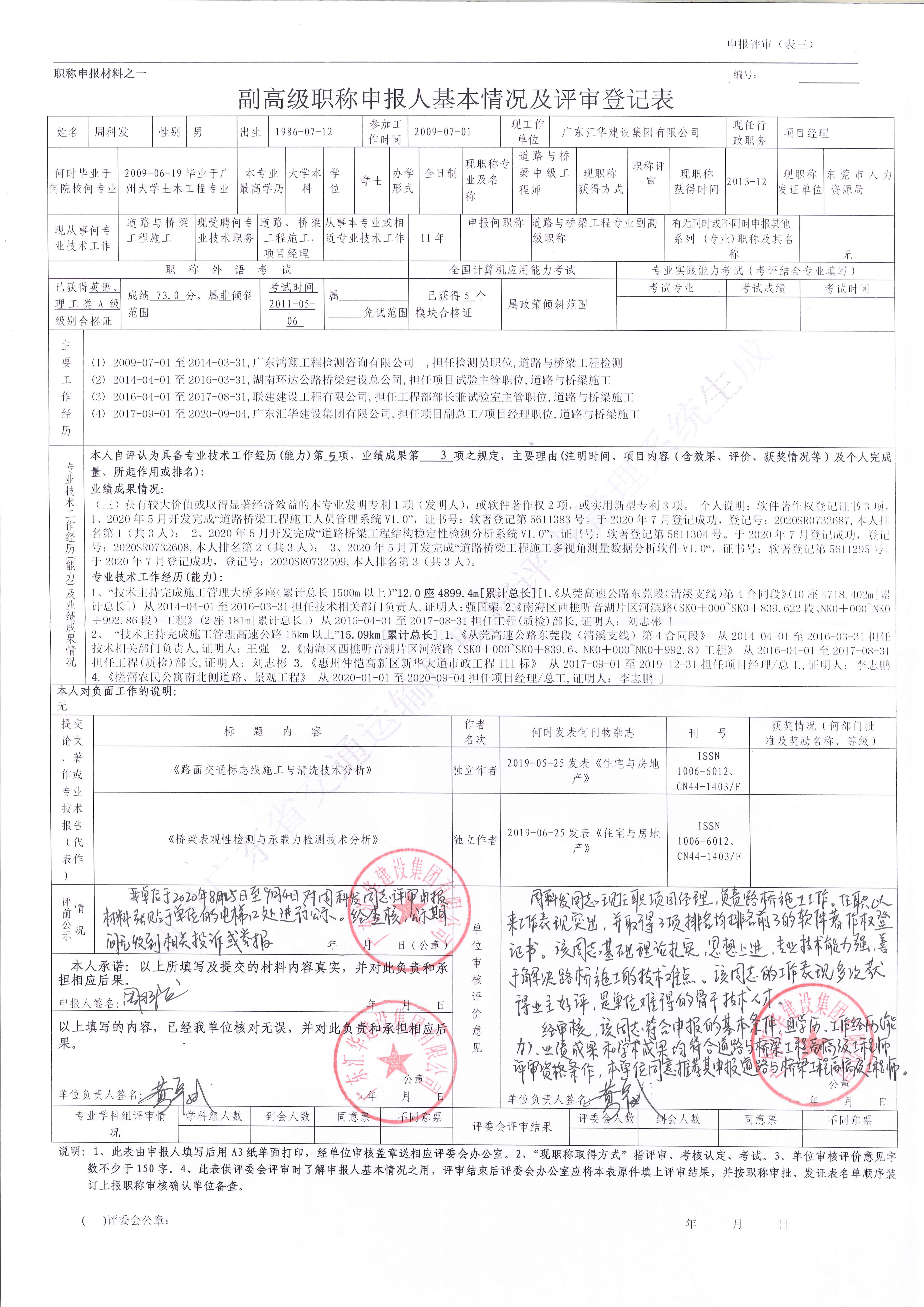 2020年道路與橋梁專業(yè)高級工程師申報資料公示